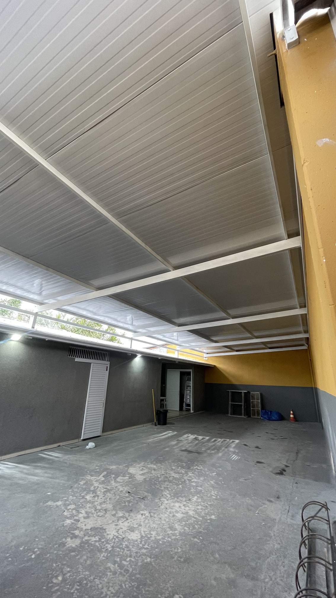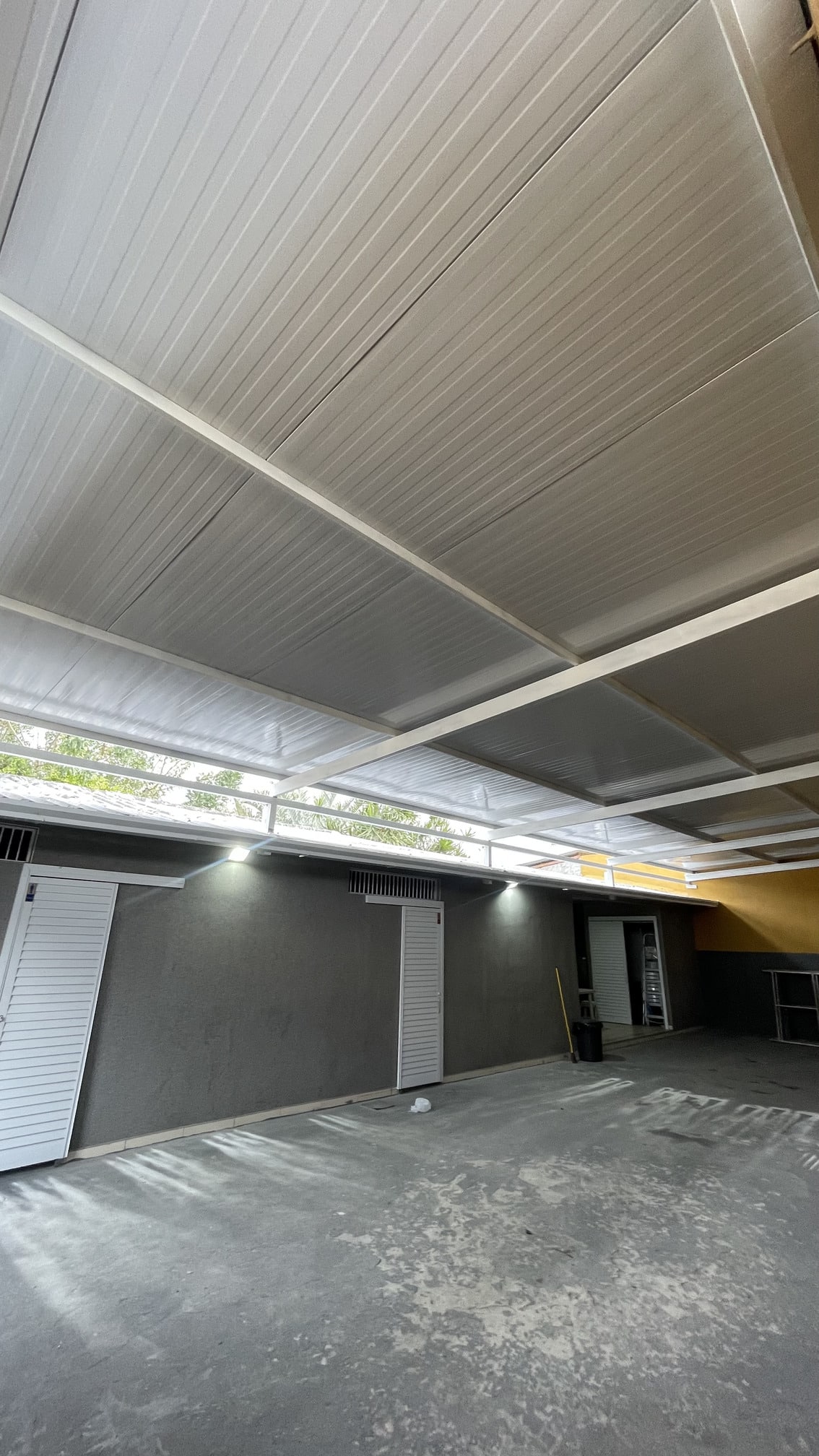Estrutura robusta em metalon galvanizado com telha termoacústica branca para ambientes sofisticados.